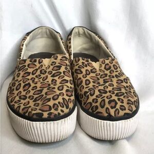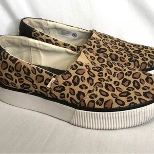 Toms Platform Slip On Sneakers Black/ Brown Cheetah Leopard Print women 8.5