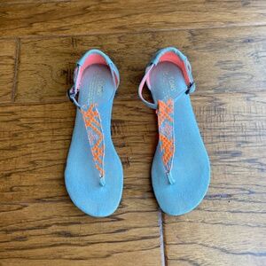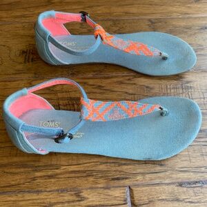 Toms 'Playa' T-Strap Flat Sandal, Blue/orange, size 7