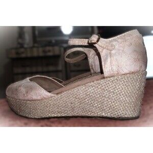 Toms Raffia Wedge Platform Boujee Sandal Beige Jacquard Rose Gold stich 7.5