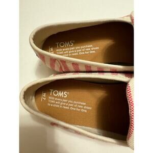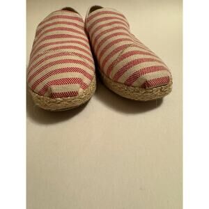 Toms Red Espadrilles Slip On Flats Woven Stripe Deconstructed Alpargatas Womens