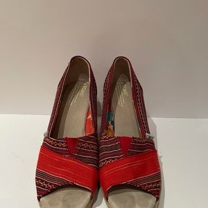 Toms Red Pattern Wedges Size 7.5