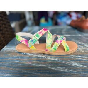 Toms SICILY Multi Color Tie Dye, size Women's 8.5; Embossed Leather sandals