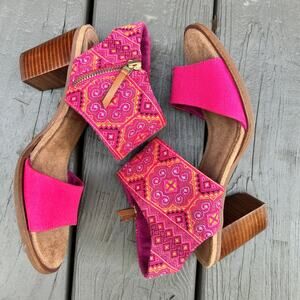 Toms Sandals Womens Majorca Pink Zip Up Cutouts Open Toe Block Heel Dress Sz 7.5
