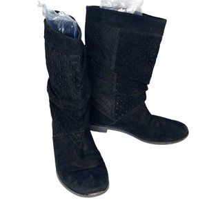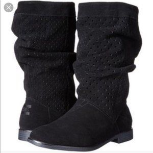 Toms Serra perforated slouch boot in black suede HIGH ANKLE PULL ON Posh Sho