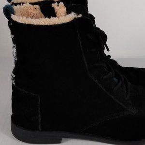 Toms Sherpa Lined Black Boots with Embroidered Detail Size: 8M
