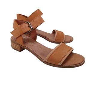 Toms Shoes Open Toe Sandal Heels Brown Sling Back Low Block Heel Womens 7