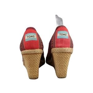 Toms Shoes Womens 8 Wedge Sandal Casuall Fashion Calypso Espadrille Red Peep Toe
