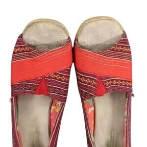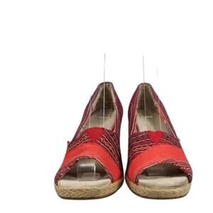 Toms Shoes Womens 8 Wedge Sandal Casuall Fashion Calypso Espadrille Red Peep Toe