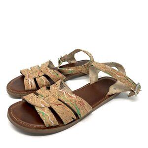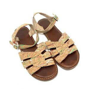 Toms Size 5.5 Zoe Cork Paint Splattered Flat Sandals Multi Color Ankle Strap
