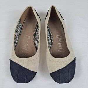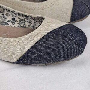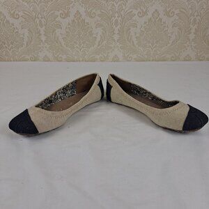 Toms Size 6 Alessandra Two Tone Ballet Flat Burlap Beige Black Lightweight