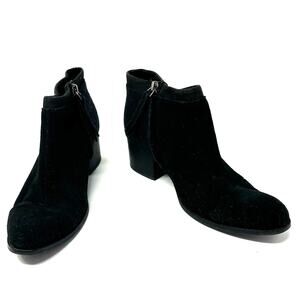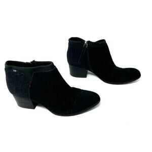 Toms Size 6.5 Boots Black 2" Heel Side Zip Pointed Toe Leather Suede Workwear