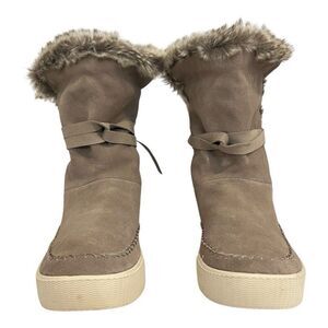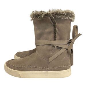 Toms Size 8.5 Boots Desert Taupe Waterproof Suede Vista Ankle Faux Fur Booties