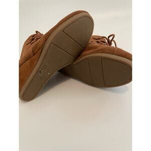 Toms Size 8.5 Brown Bootie Heels Tassel Lace Up Suede