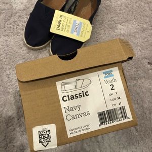 Toms “Classic Navy Canvas” Slides. Youth size 2. New with tags. Never worn!