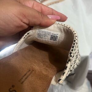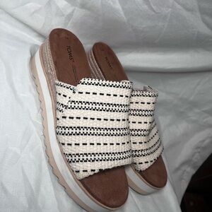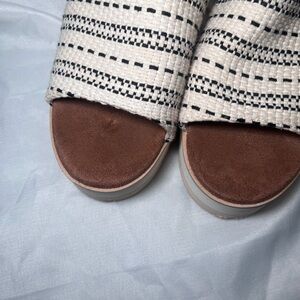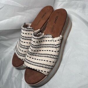 Elevate your style with Toms platform sandals. Features a chic striped pattern. Perfect for any casual outing.