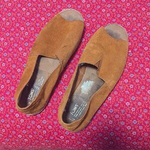 Toms Suede Alpargata Peep Toe Flat Shoe Women’s Brown Leather Boho Sandal