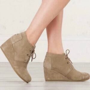 Toms Suede Desert Wedge Tie Ankle Bootie Size 7 Tan