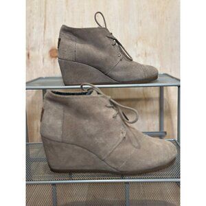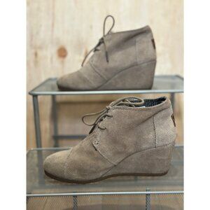 Toms Suede Desert Wedges Ankle Boots Lace-Up Booties Taupe Beige Size Womens 8