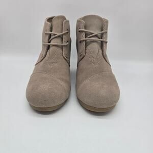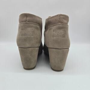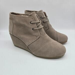 Toms Suede Lace-Up Wedge Ankle Booties 8.5 Casual chic Heeled Taupe Almond Toe