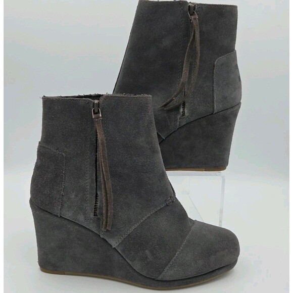 Toms Suede Wedge Boots Gray 8 Ankle Bohemian Business Casual Side Zip EUC