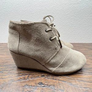 Toms Suede Wedge Lace Up Ankle Booties Women's Size 7