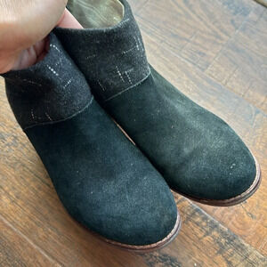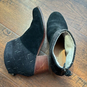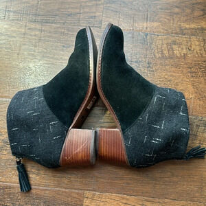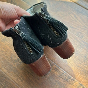 Toms Suede wool gray tassel zip ankle booties blocked heel size W7