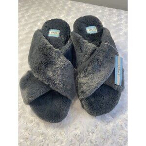 Toms Susie Womens Dark Natural Forged Iron Faux Fur Slippers Open Toe Size 10 NWT
