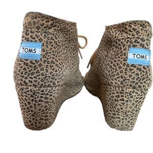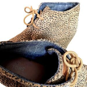 Toms Women's Kala Desert Wedge Suede Booties Sz 10 Cheetah Leopard Print Lace Up Boots.
