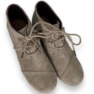 Toms Tan Beige Suede Lace Up Bootie Wedge Heels Round toe Size 7.5 Laced Beige