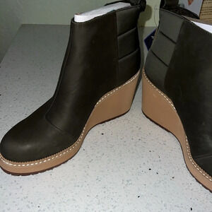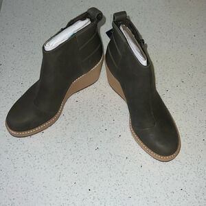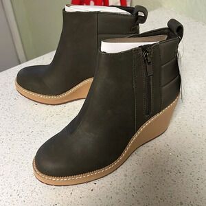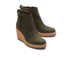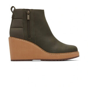 Tom’s Tarmac Olive Green Leather Quilted Raven Booties, Women’s Size 6