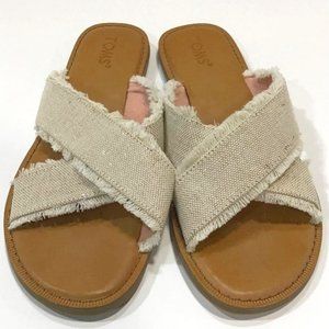 New TOMS Women's Viv Natural Metallic Jute Slides Sandals Size 10 Beach