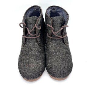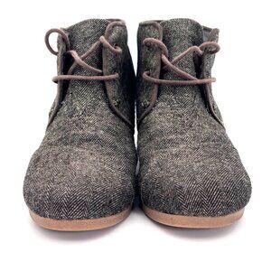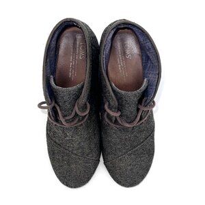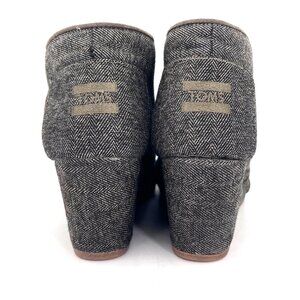 Toms Wedge Ankle Boots Booties Womens Size 9 Grey Herringbone Canvas Shoes Logo