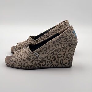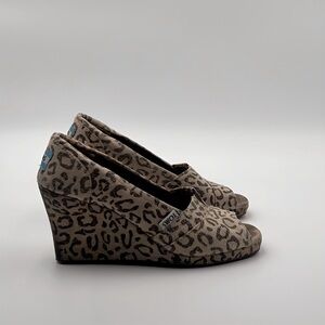 Toms Wedge Snow Leopard Print Ankle Canvas Heel Bootie Shoes Women’s Sz 7 Animal