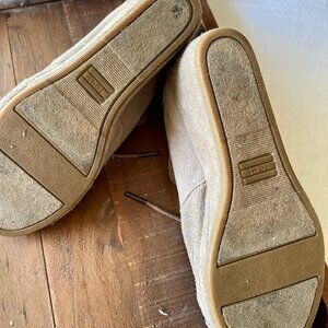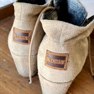 Tom's W9 size Light taupe color Leather upper with wedge heel 2 1/4" Good condition, little signs of wear, soles have no wear