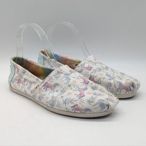 Toms White Blue Purple Magical Unicorn Fabric Slip On Shoe 8