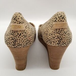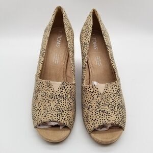 Toms Women Michelle Wedge Heels Size 8 Animal Print Fabric Peep toe Slip On