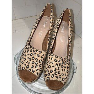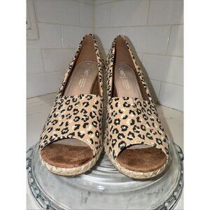 Toms Women Size 8 Michelle Cheetah Print Stacked Heel Slip On Wedge Peep Toe