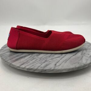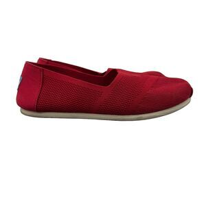 Toms Womens 7.5 Shoes Red Classic Slip On Woven Mesh Canvas Flat Shoes 10010820