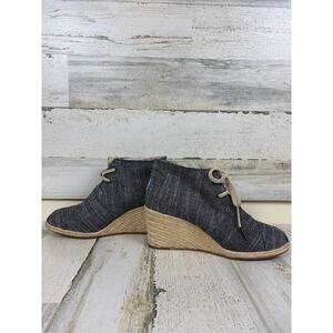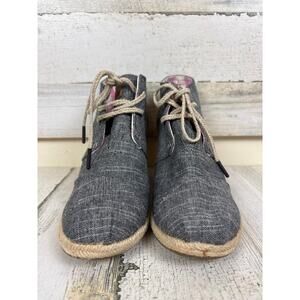 Toms Women’s 8 Chambray Denim Desert Wedge Lace Up Espadrille Ankle Boots