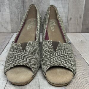 Tom's Women's 9 Stella Calypso Herringbone Tweed Wedge Sandals Cork Heel Brown