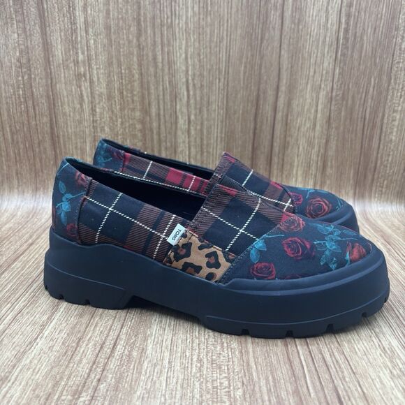 Toms Women's Alpargata Combat Tartan Patchwork Leopard Casual Red Size 8
