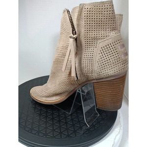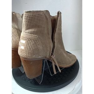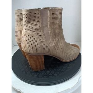 TOMS Women’s Ankle Boots Beige Suede Size 9 Side Zip Heels