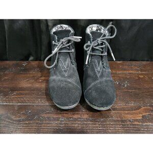 Toms Women's Black Suede Desert Wedge Lace-Up Bootie Sz. 8
