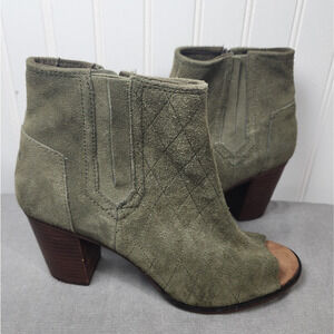Toms Womens Bootie Green 9 Suede Chunky Heel Retro Y2K Office Date Night