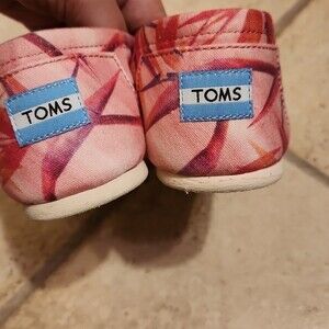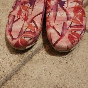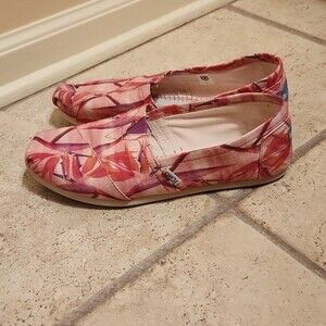 Toms Women's Canvas Slip-on Shoes Pink Tropical Flowers Print Size 8