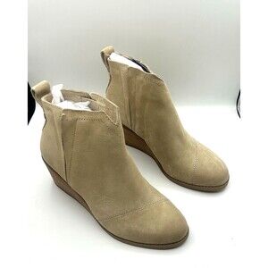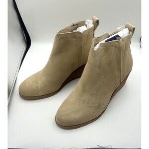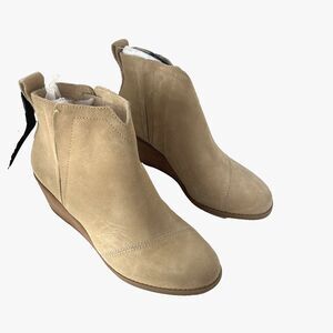 Toms Women’s Clare Oatmeal Suede Leather Booties Ankle Wedge Boots Sz US 6 New