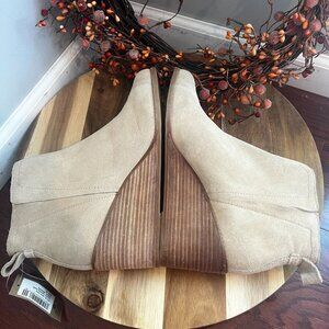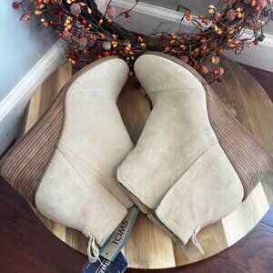 Toms Womens Clare Wedge Ortholite Foam Insole Boot Sz 12 in Oatmeal Suede