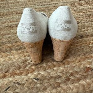 Tom’s Women’s Classic Beige Neutral Espadrille Wedge Peep Toe Sandal Size 9.5