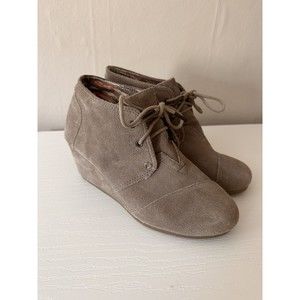 Toms Womens Desert Wedge Bootie Taupe Size 8 Lace Up Casual Heel Neutral Boho