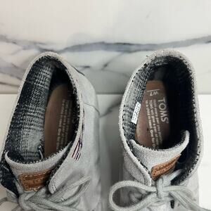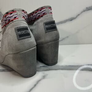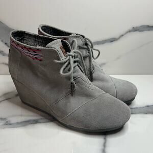 Toms Women's Gray Suede Embroidered Detail Lace-up Short Wedge Bootie Sz 7 Boho